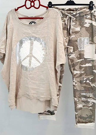 Ladies Casual Loose Printing Round Neck Two Piece Suit